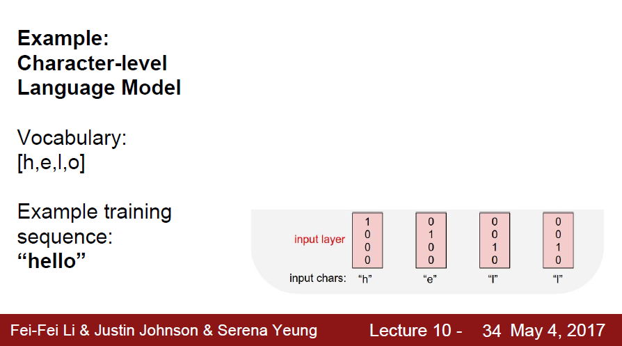 우선은 간단한 예제를 위해서 character level language model을 살펴보자.