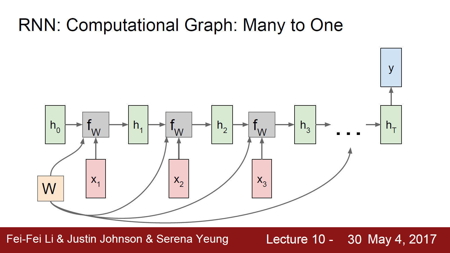 이 경우에는 네트워크의 최종 hidden state에서만 결과 값이 나올 것이다. 최종 hidden state가 전체 시퀀스 내용에 대한 일종의 요약이기 때문이다.