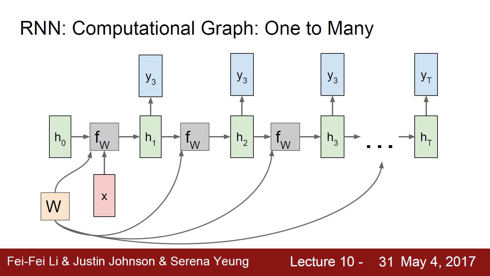 이 경우에는 대부분 고정 입력은 모델의 initial hidden state를 초기화 시키는 용도로 사용하고, RNN은 모든 step에서 output을 가진다.
