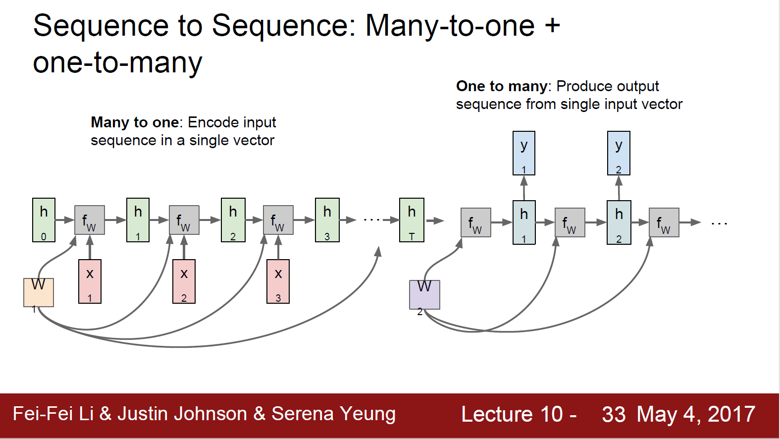 즉, encoder에서는 many to one을 수행하는데, 가변 입력을 하나의 벡터로 요약한다.