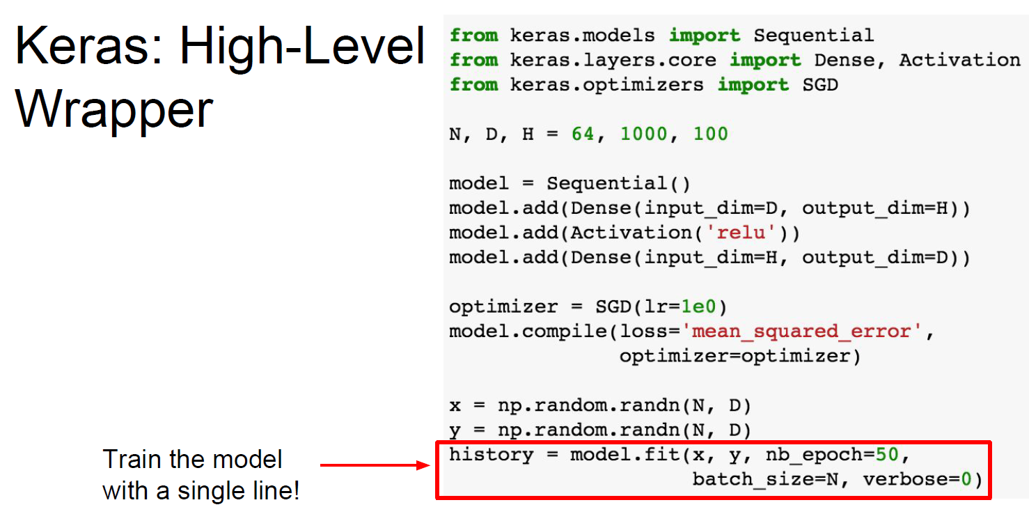 Keras는 코드가 굉장히 간단하고 직관적인 특징을 갖는다.