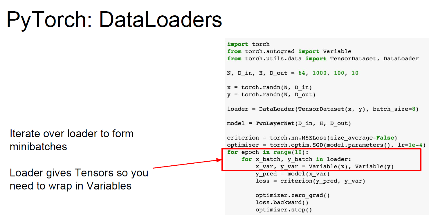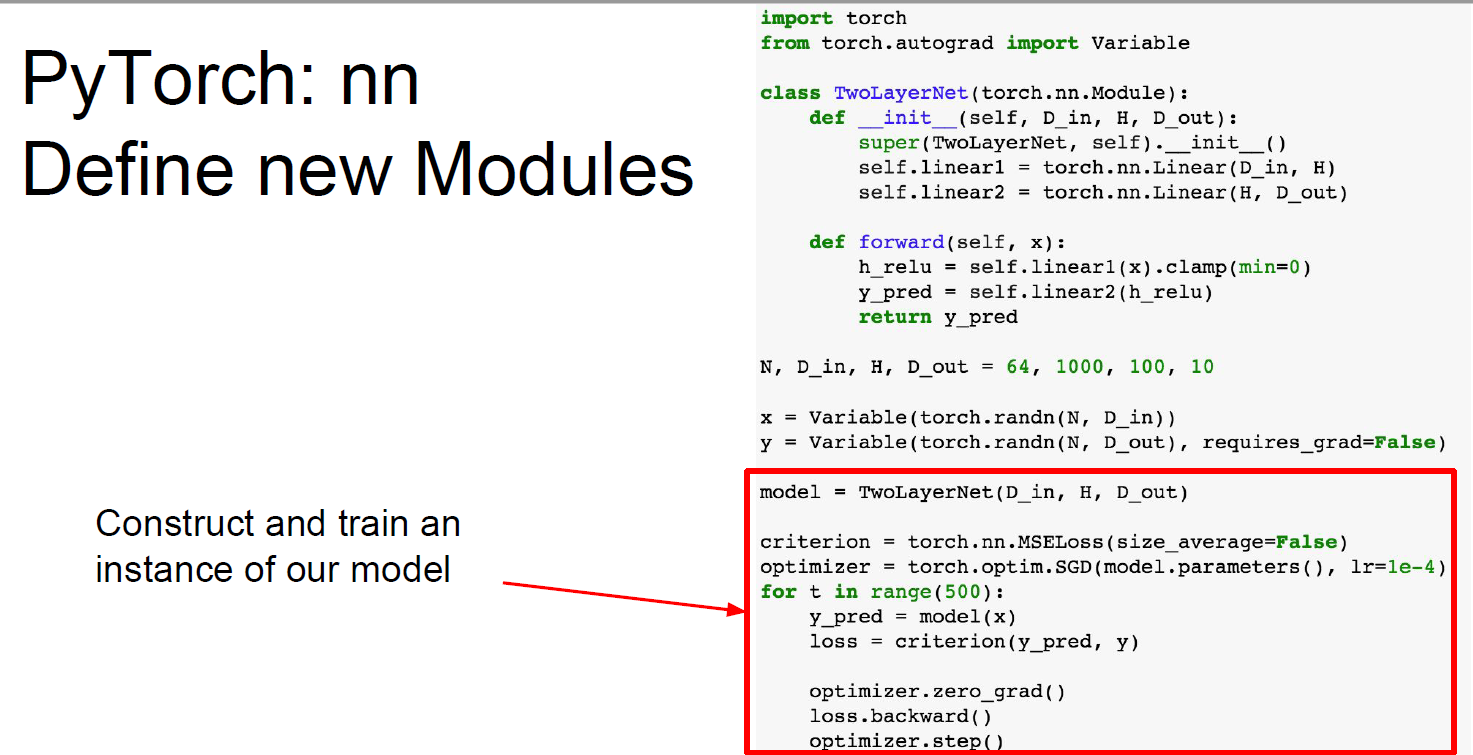 PyTorch는 Tensorflow와 다르게 graph가 dynamic graph이다. Training을 시킬 때마다, 매번 새로운 그래프를 구성한다.