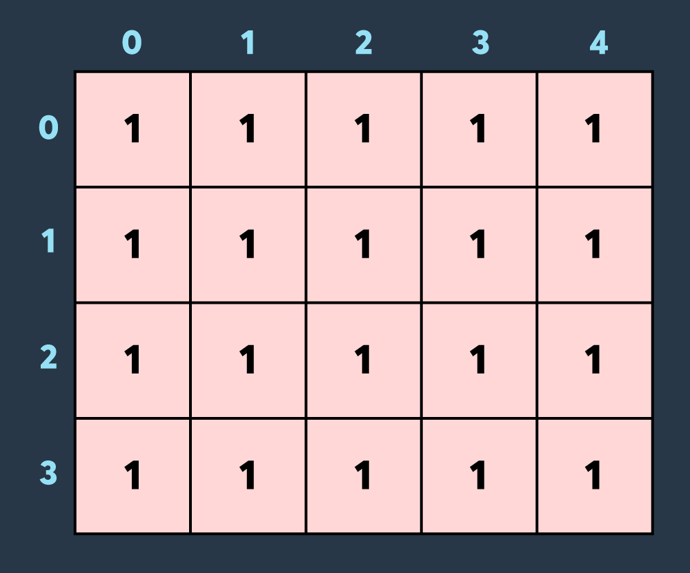 예를 들어, 아래 사진은 크기가 4 x 5인 맵에 내구도가 5인 건물들이 있는 상태입니다.